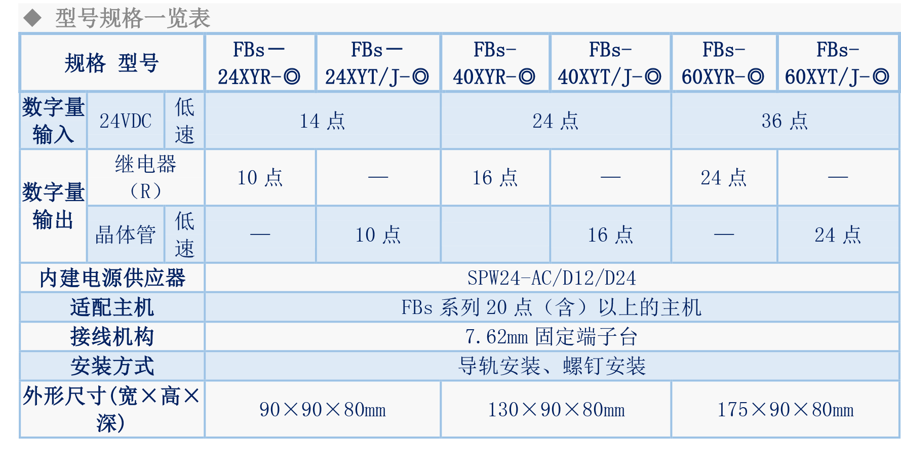 DI/DO扩展机产品说明:20/40/60点开关量扩展机内置电源可供其他扩展模块使用适配FBs系列所有20点(含)以上的PLC主机.