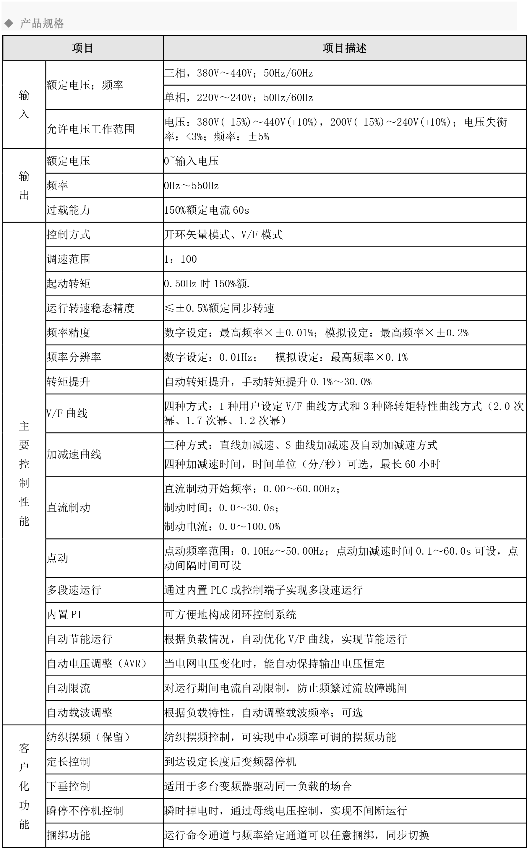 稳速精度高,±0.5%额定同步转速(SVC),调速范围广,1:100(SVC)