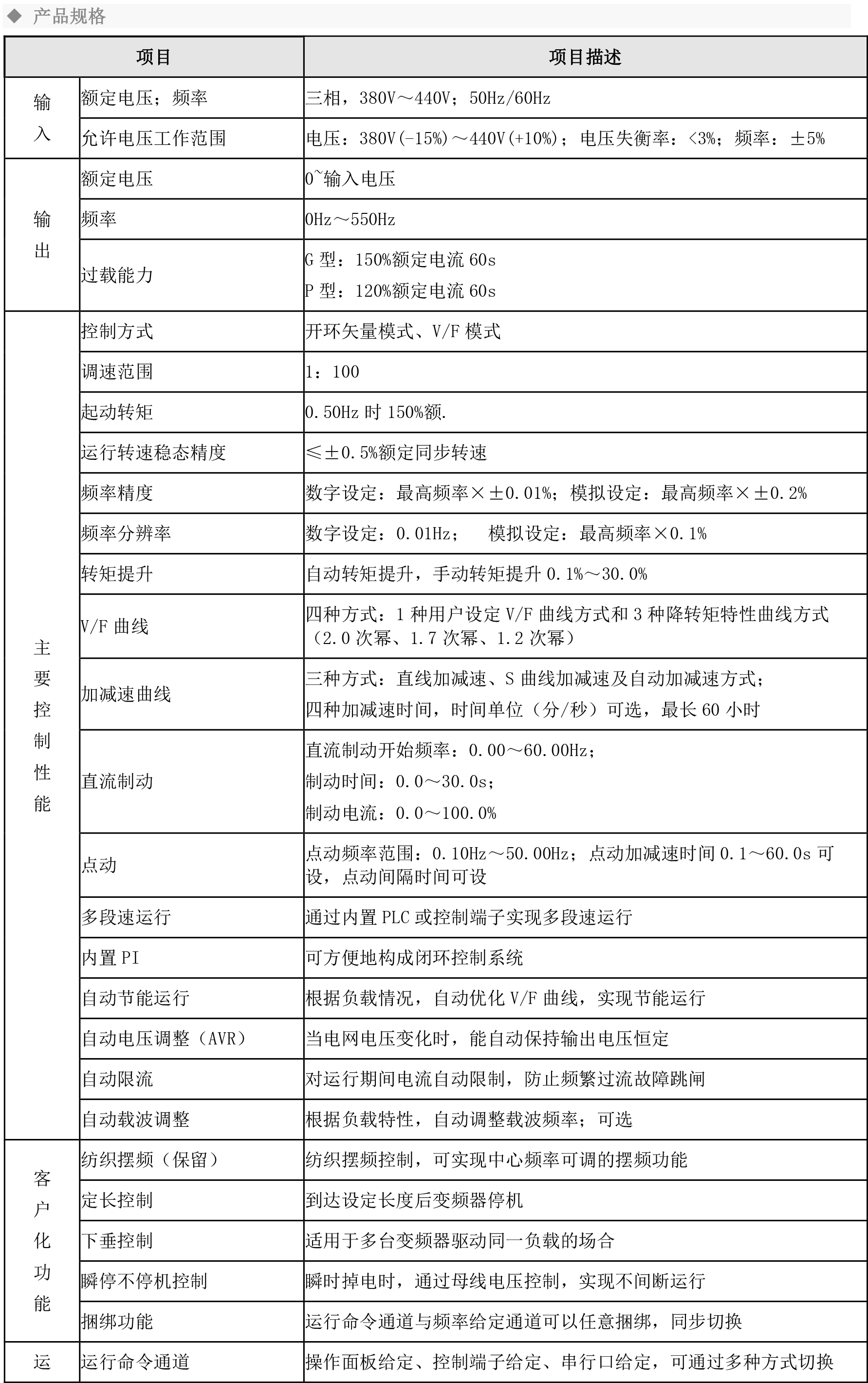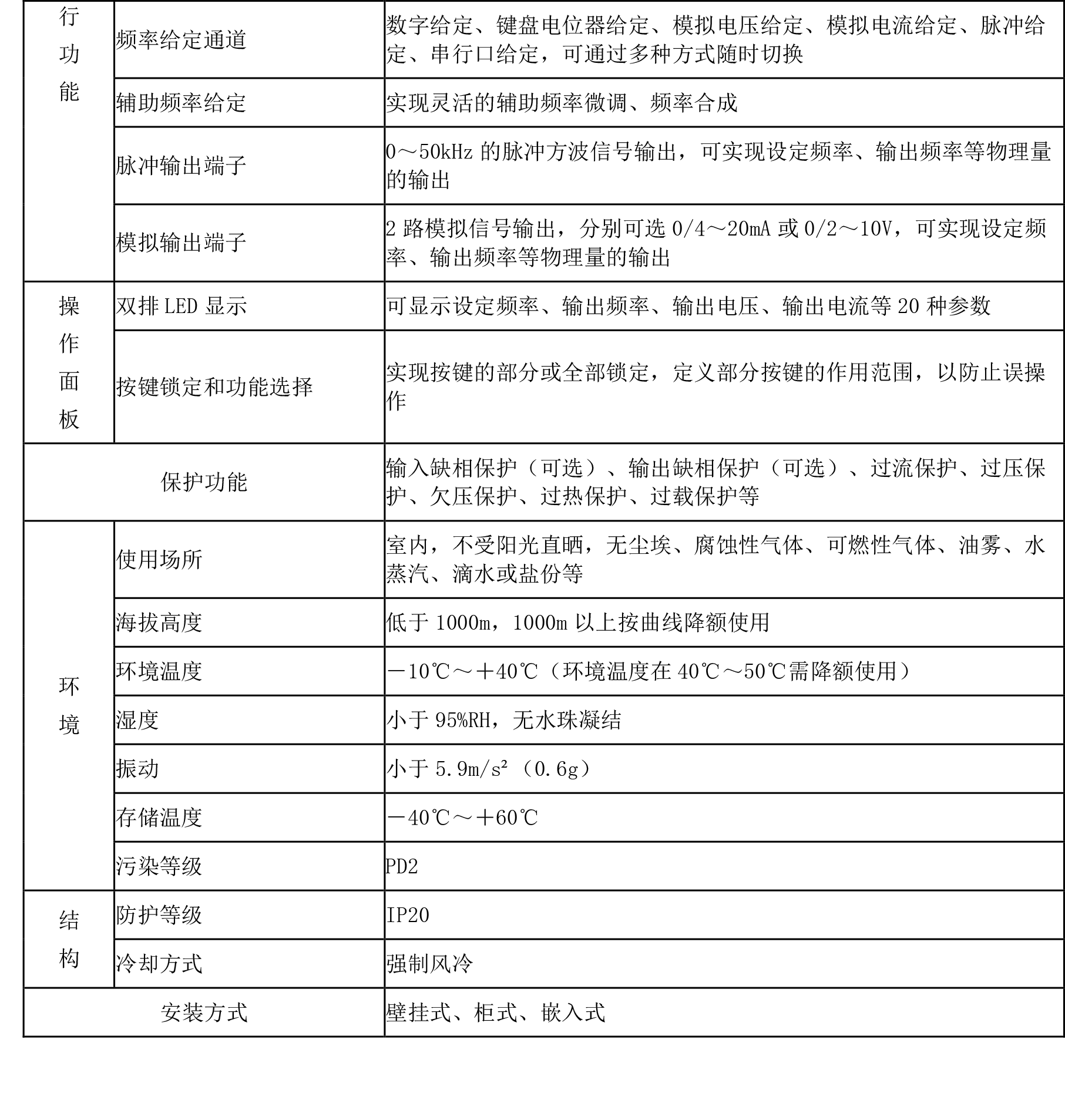 注:4.0KW以上机型支持双功率机型,即恒转矩型负载和风机水泵型负载。另,315KW仅支持风机水泵型负载。